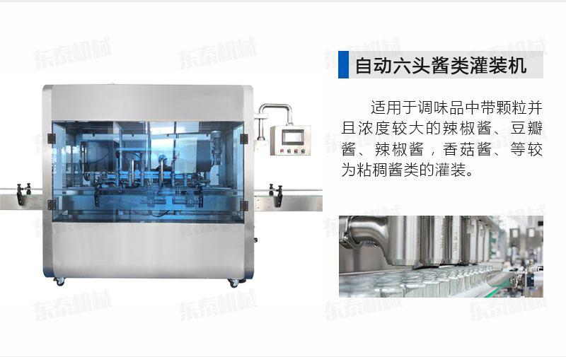 該系列灌裝機采用活塞式氣缸驅(qū)動原理,適用于調(diào)味品中帶顆粒并且濃度較大的辣椒醬、豆瓣醬、辣椒醬,香菇醬、等較為粘稠醬類的灌裝。灌裝轉(zhuǎn)閥可以根據(jù)客戶物料定做加大,以適應不同客戶物料的灌裝需求。配備臥式攪拌料斗,大限度的保障在灌裝過程中物料均勻、無油醬分離。該設(shè)備在設(shè)計上大大縮短了下料斗到灌裝頭的灌裝距離,克服了含油量大的物料(如:含芝麻粒的辣椒油)在灌裝過程中出現(xiàn)的有些瓶油多,有些瓶醬多的灌裝誤差大的缺點。