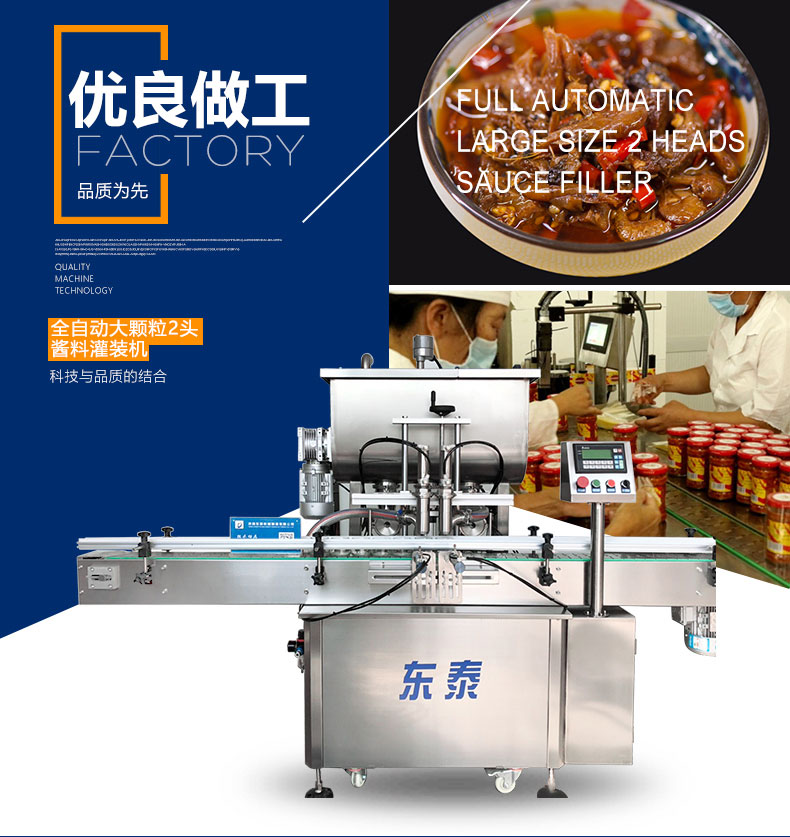 該系列灌裝機(jī)采用活塞式氣缸氣動(dòng)原理,適用于調(diào)味品中帶顆粒并且濃度較大的香菇醬、辣椒醬、豆瓣醬、花生醬、芝麻醬、果醬、牛油火鍋底料、紅油火鍋底料等較為粘稠醬類的灌裝。灌裝轉(zhuǎn)閥可以很具客戶物料定做加大,以適應(yīng)不同客戶物料的灌裝需求。