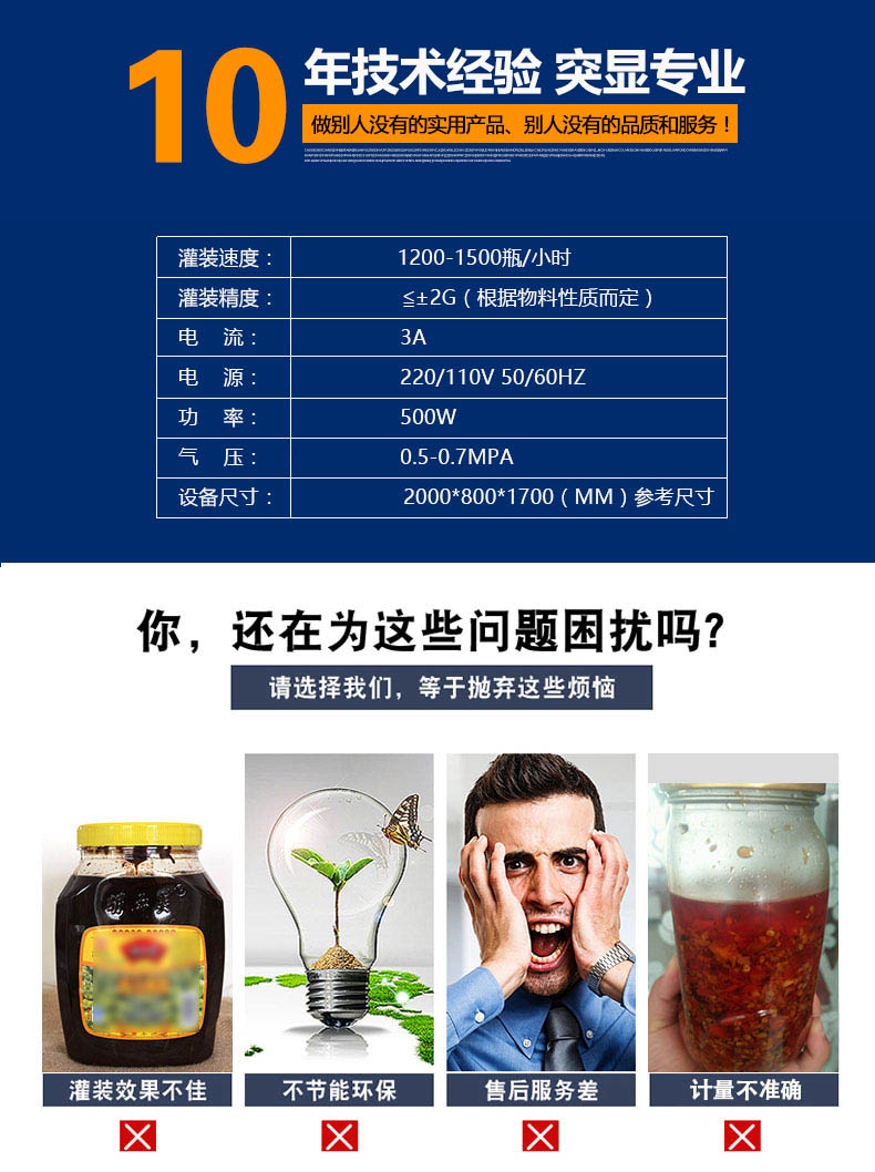 2.灌裝機(jī)采用橫推料的方式,大大縮短了下料斗到灌裝頭的距離,提高了灌裝速度,更重要的是解決了含油量大的物料在灌裝過程中出現(xiàn)的有些瓶油多,有些瓶醬多的灌裝難題,大大提高了灌裝精度。