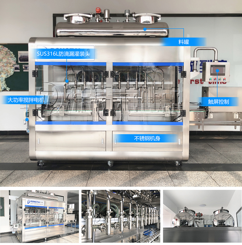 灌裝機(jī)采用活塞式灌裝原理,適用于調(diào)味品中帶顆粒并且濃度較大的辣椒醬、豆瓣醬、花生醬、香菇醬、果醬、牛油火鍋底料、紅油火鍋底料、蝦醬等較為粘稠醬類的灌裝。